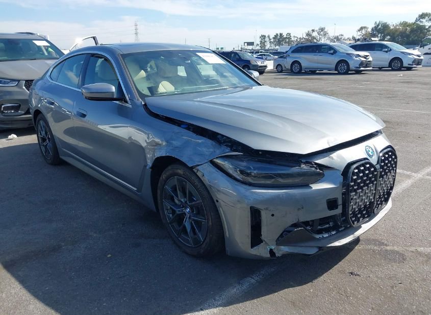 This 2025 BMW I4, a car, is listed with 1,330 miles on odometer, according to the auction data. It runs on electric and has a automatic transmission.